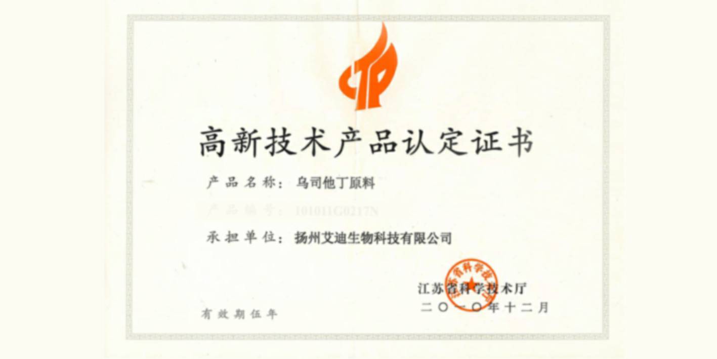 • 南宁来福视觉艺术咨询有限公司原料产品-乌司他丁 荣获“江苏省专精特新产品”称号